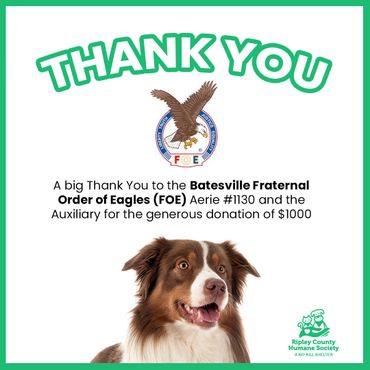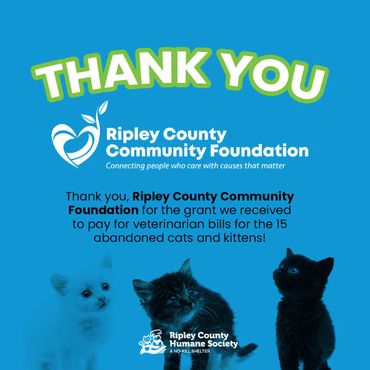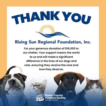 The Ripley County Humane Society is a privately owned no-kill humane society in Osgood, IN. We provide quality care and shelter to strays, abused, injured, or unwanted dogs and cats in a clean, safe, nurturing, cost-effective environment, resulting in securing forever homes regardless of the amount of time involved in the effort.