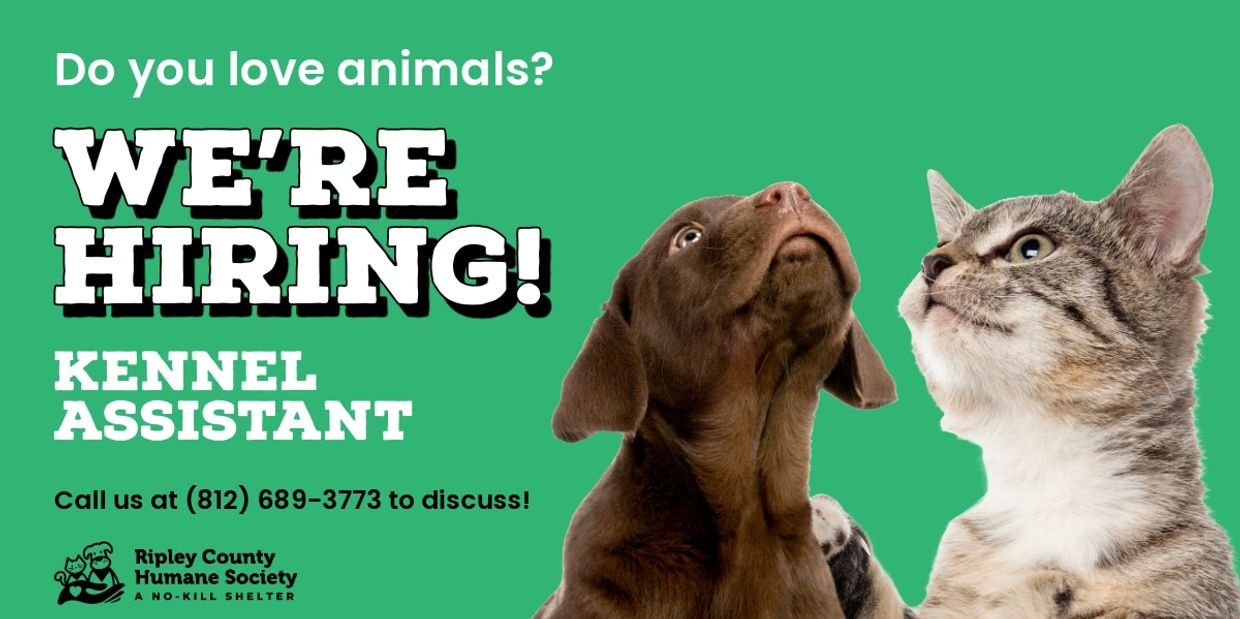 Help us care for our furry friends—call and apply today! ❤️ #NowHiring #AnimalLovers #RipleyCountyHumane